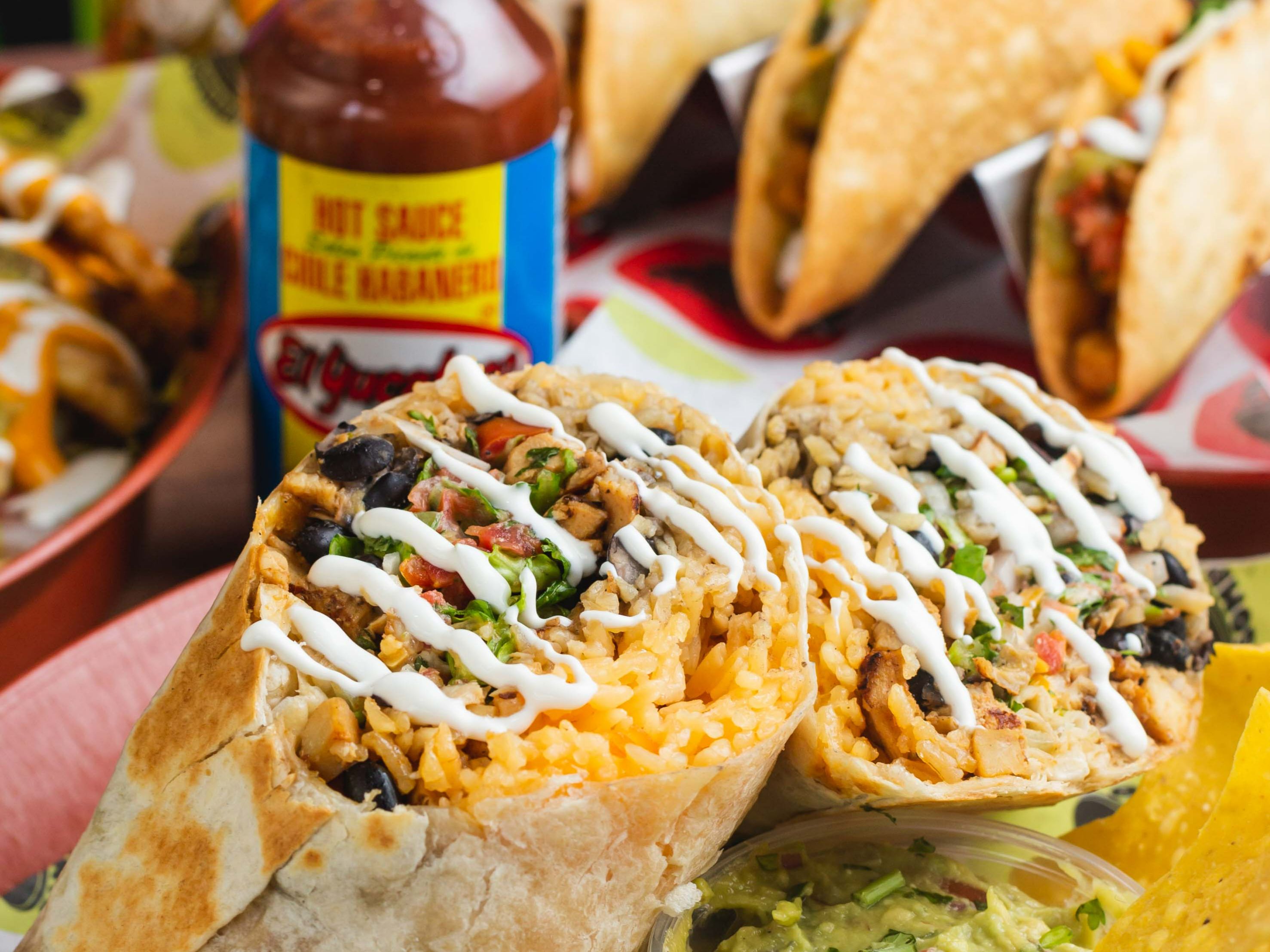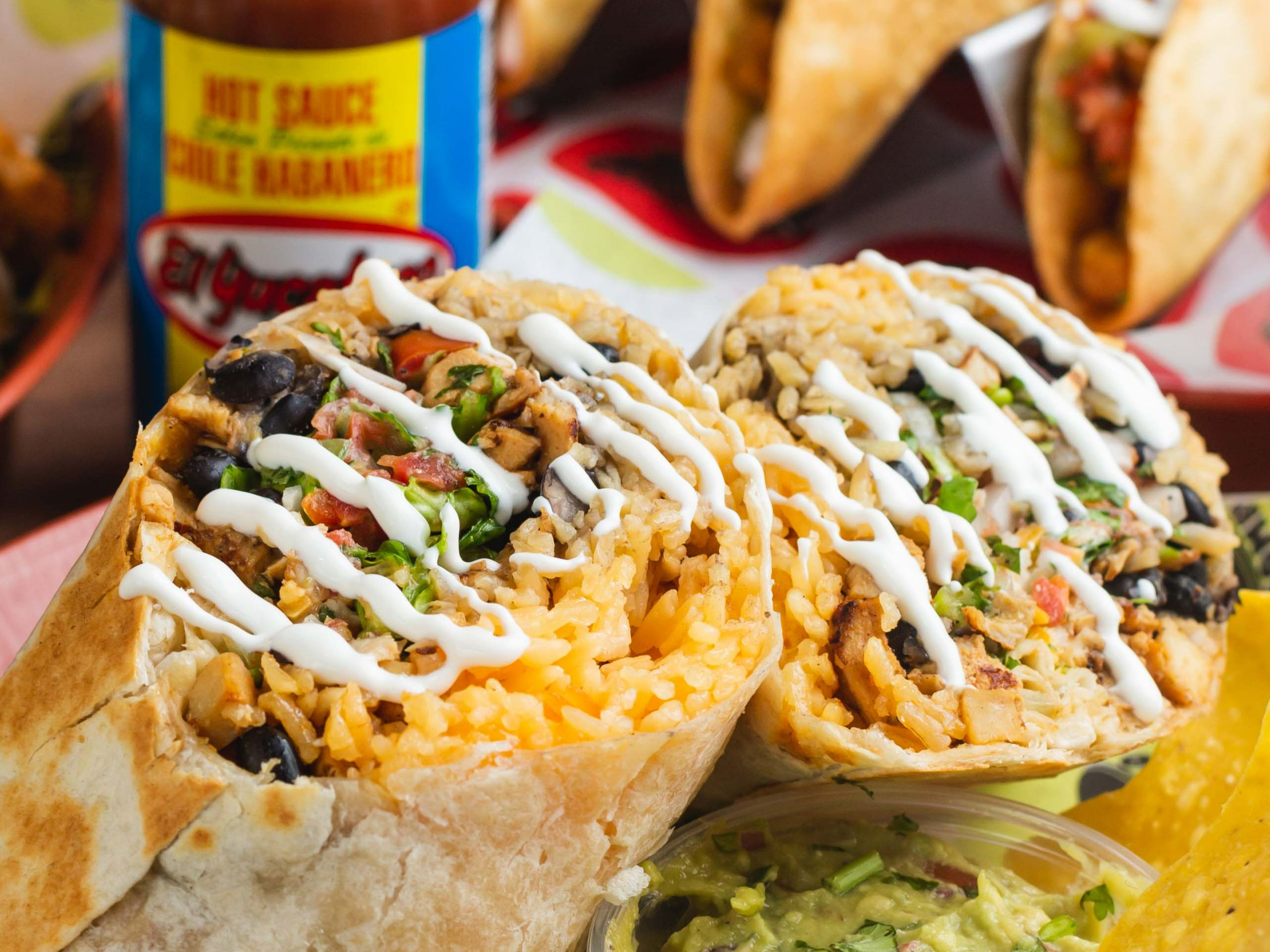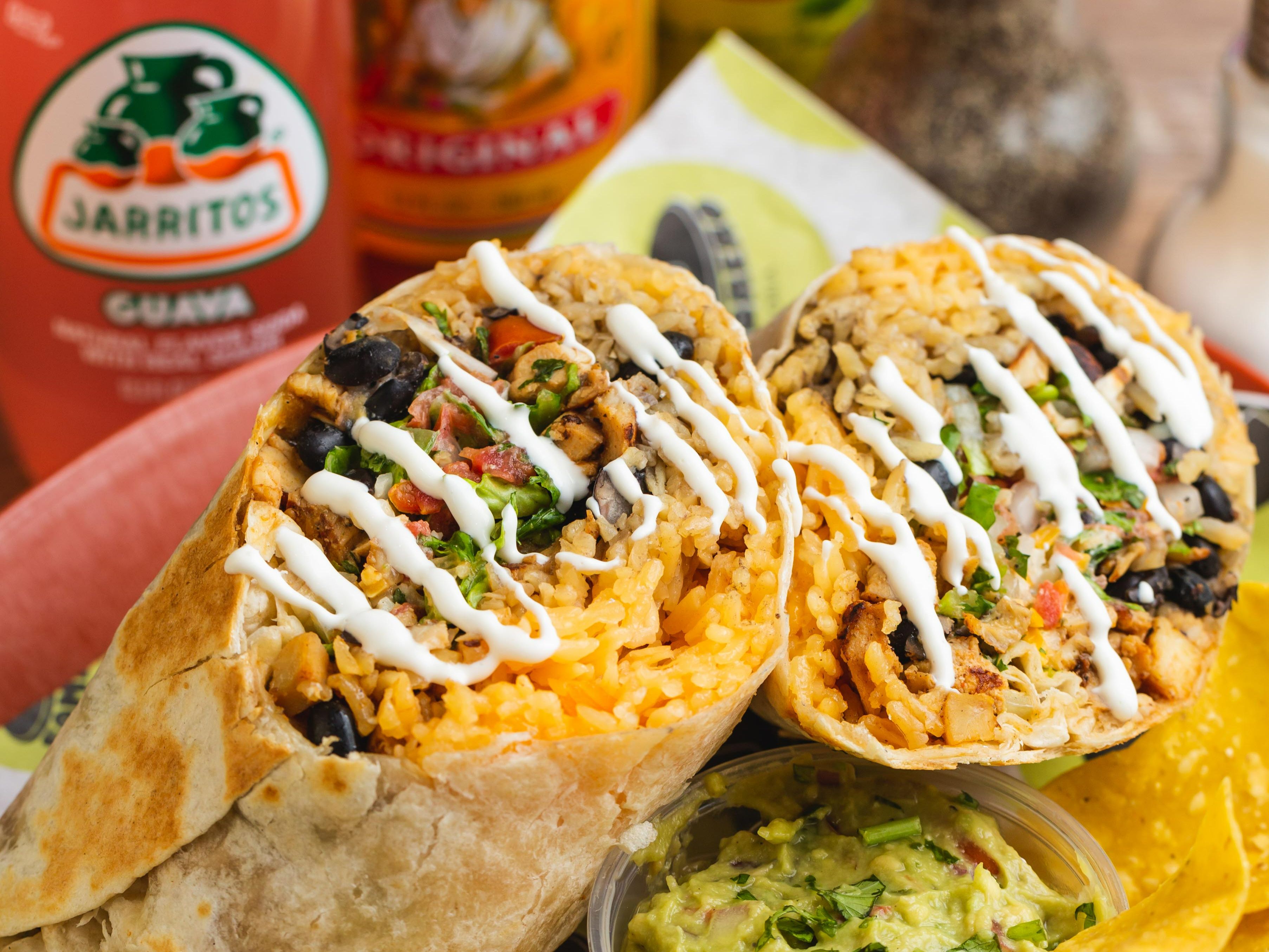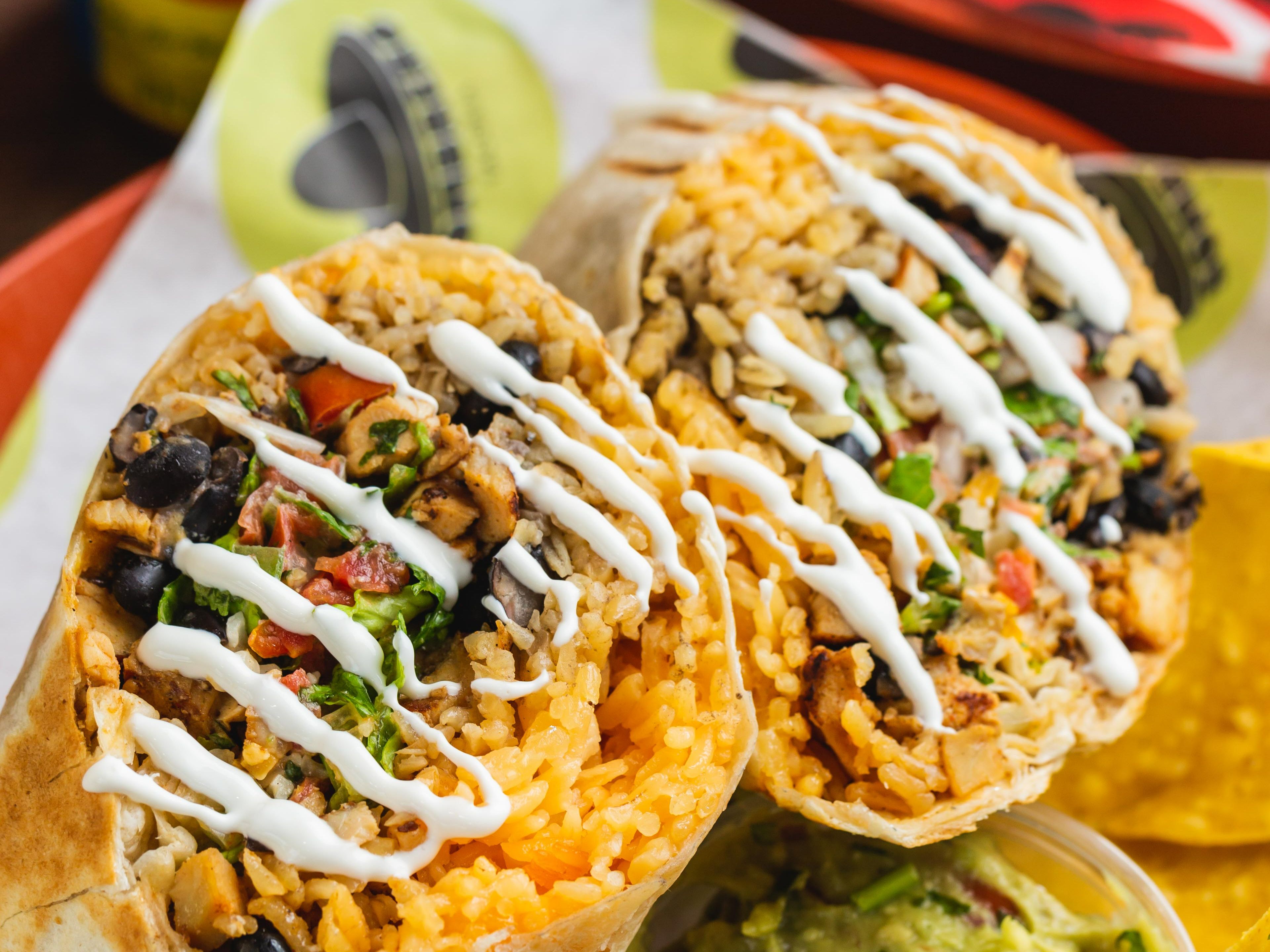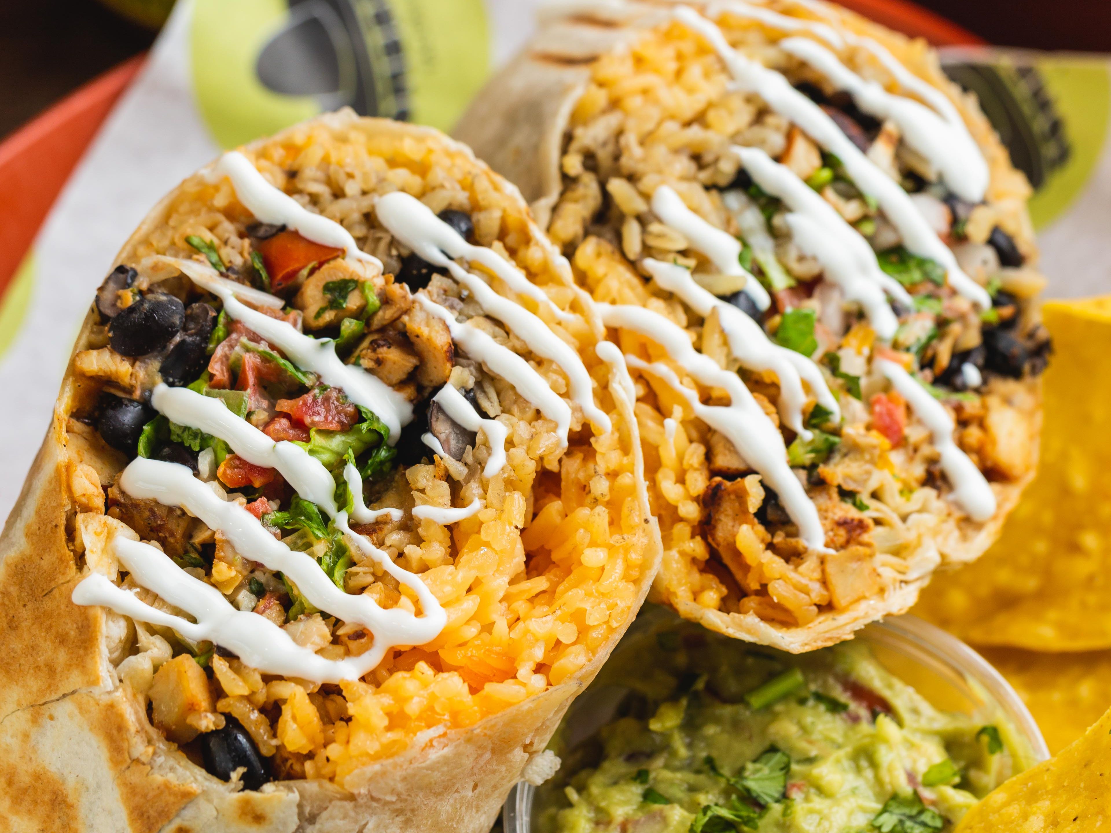 OUR SIGNATURE MARINADE WITH A SPLASH OF CITRUS SEARED HOT ON OUR FLAT-TOP GRILL - packed with rice or lettuce. Topped with black beans, cheese, pico, tomatillo salsa, & crema, wrapped in a 12" flour tortilla.