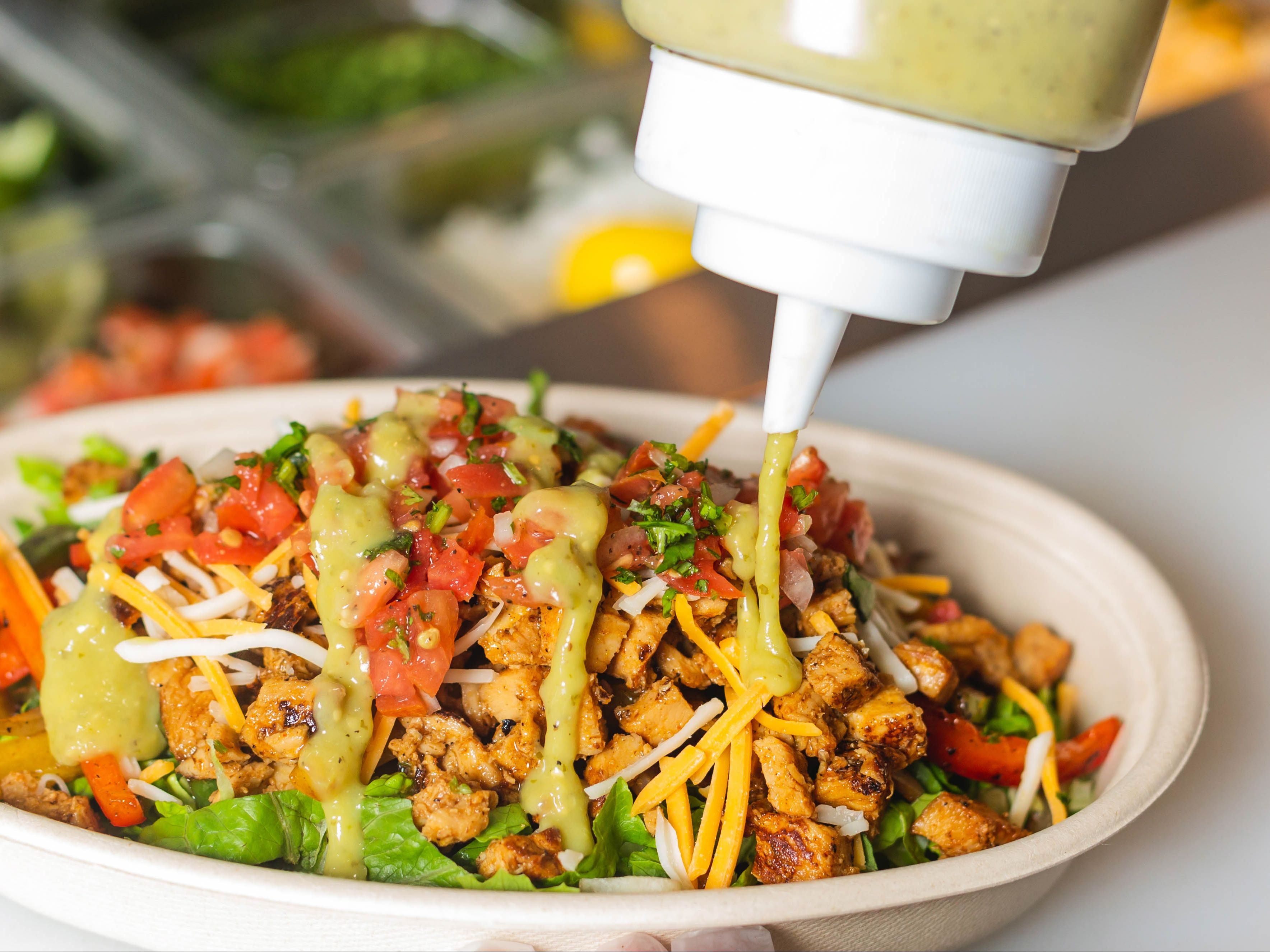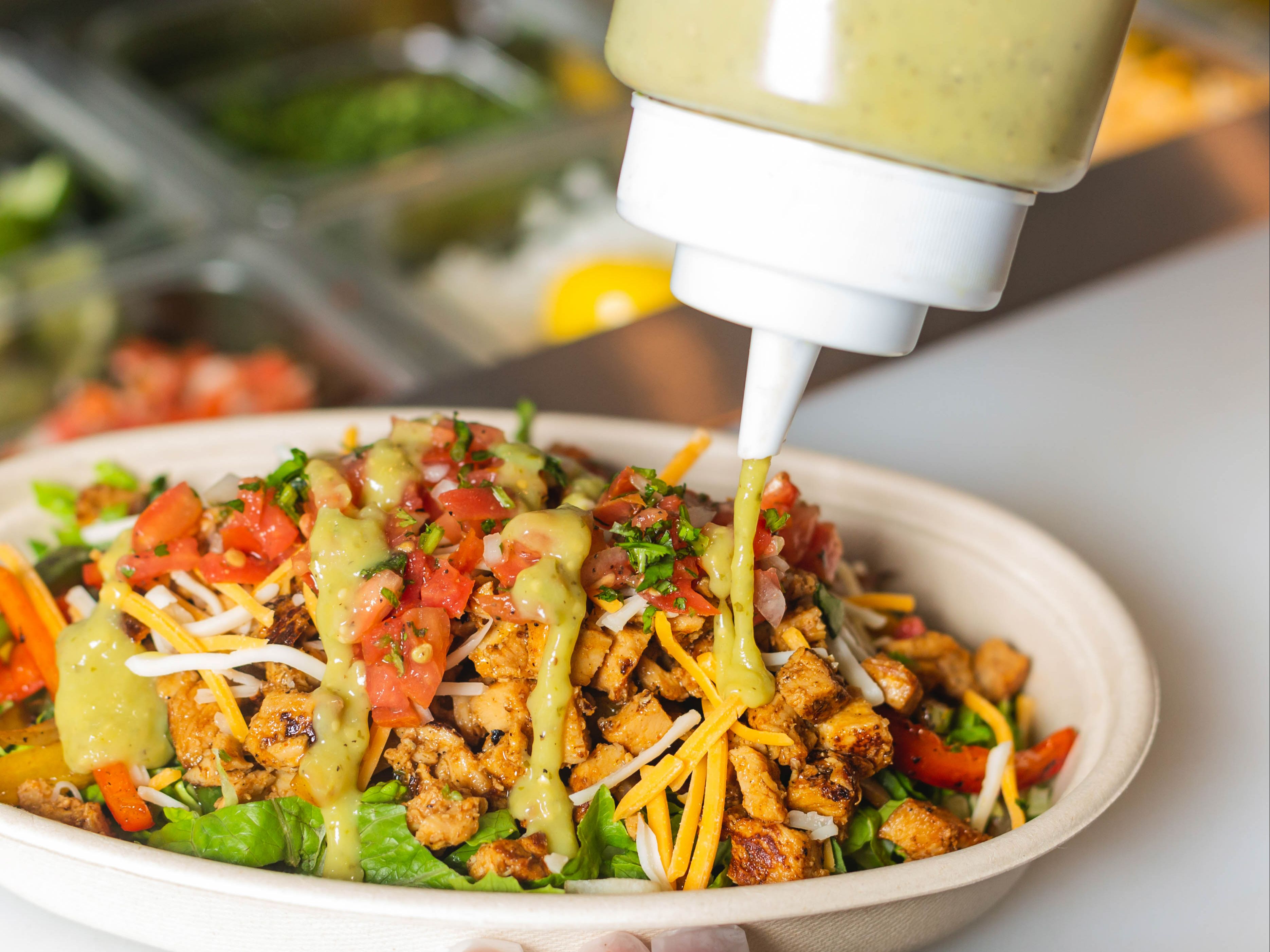 10 PERSONS CATERING ORDER "BUILD YOUR OWN" BOWL BAR INCLUDES YOUR CHOICE OF TWO PROTEINS (MUSHROOM, CHICKEN, AL PASTOR, CARNITAS, CHORIZO, STEAK, SHRIMP OR FISH) SERVED WITH RICE, BLACK BEANS, CHEESE, LETTUCE, PICO DE GALLO, TOMATILLO SALSA AND CREMA
