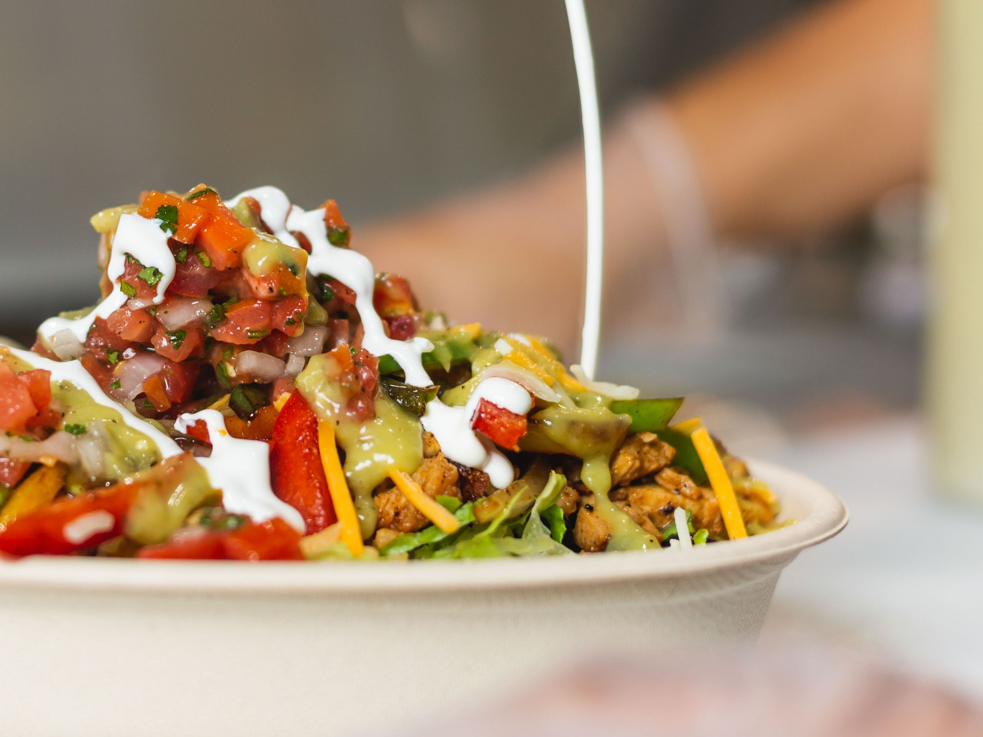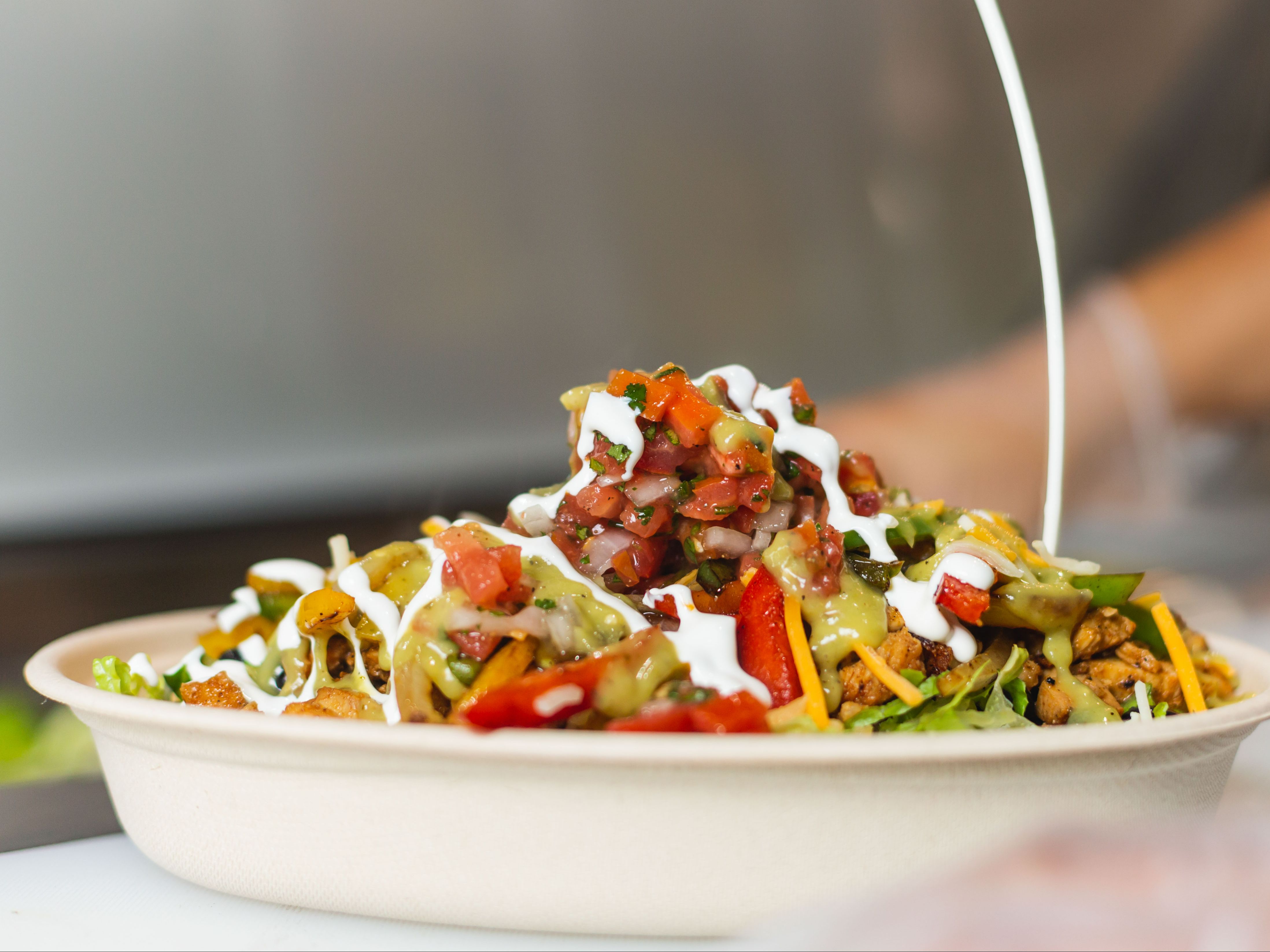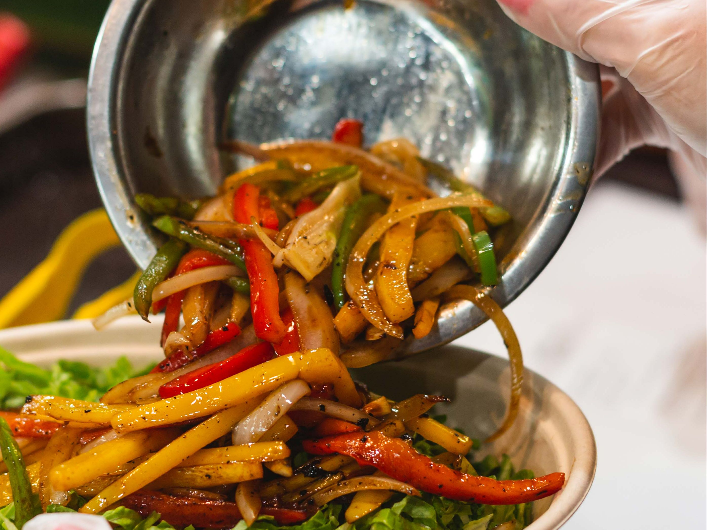 10 PERSONS CATERING ORDER "BUILD YOUR OWN" BOWL BAR INCLUDES YOUR CHOICE OF TWO PROTEINS (MUSHROOM, CHICKEN, AL PASTOR, CARNITAS, CHORIZO, STEAK, SHRIMP OR FISH) SERVED WITH GRILLED PEPPERS & ONIONS, RICE, BLACK BEANS, CHEESE, LETTUCE, PICO DE GALLO, TOMATILLO SALSA AND CREMA