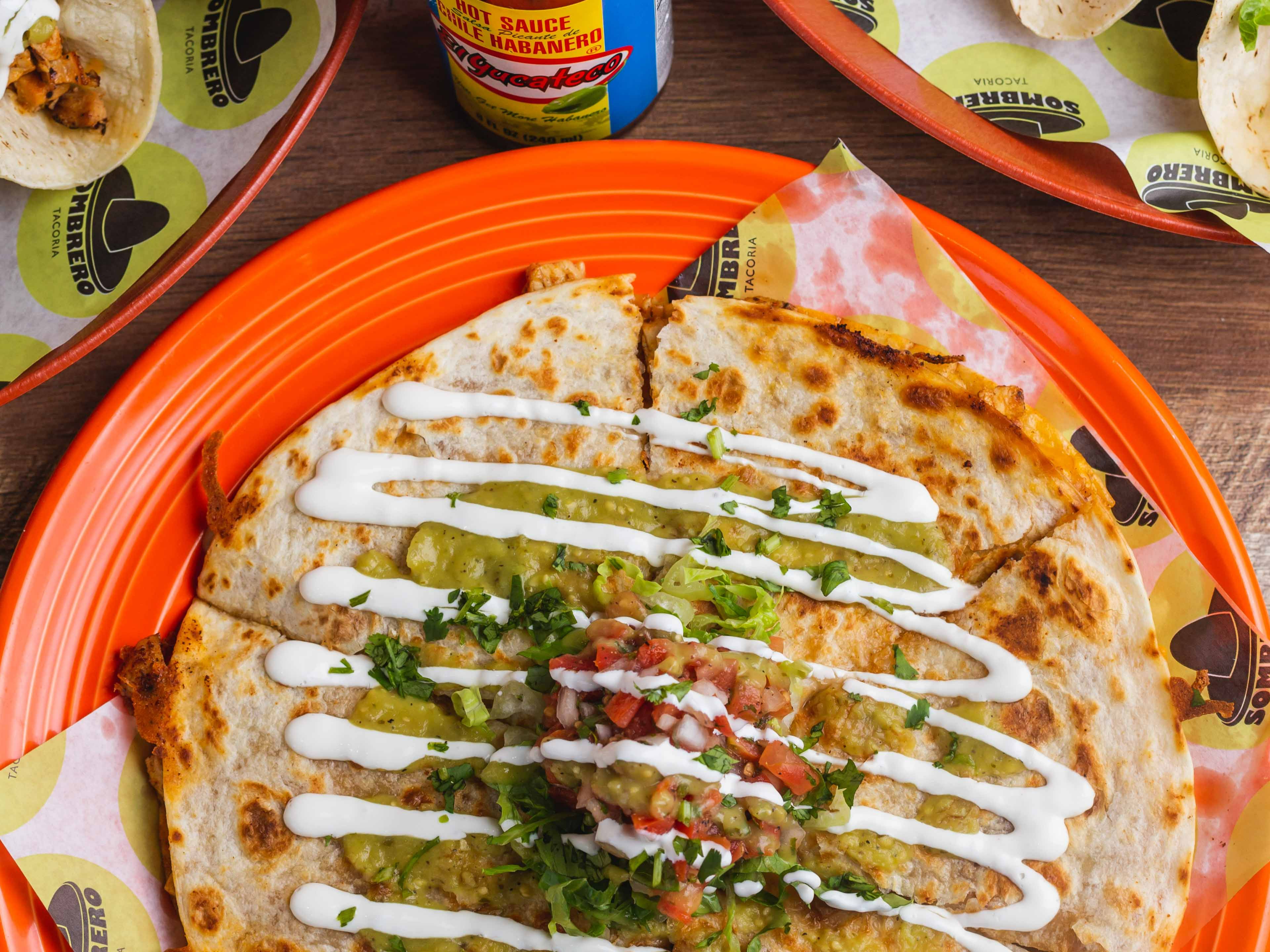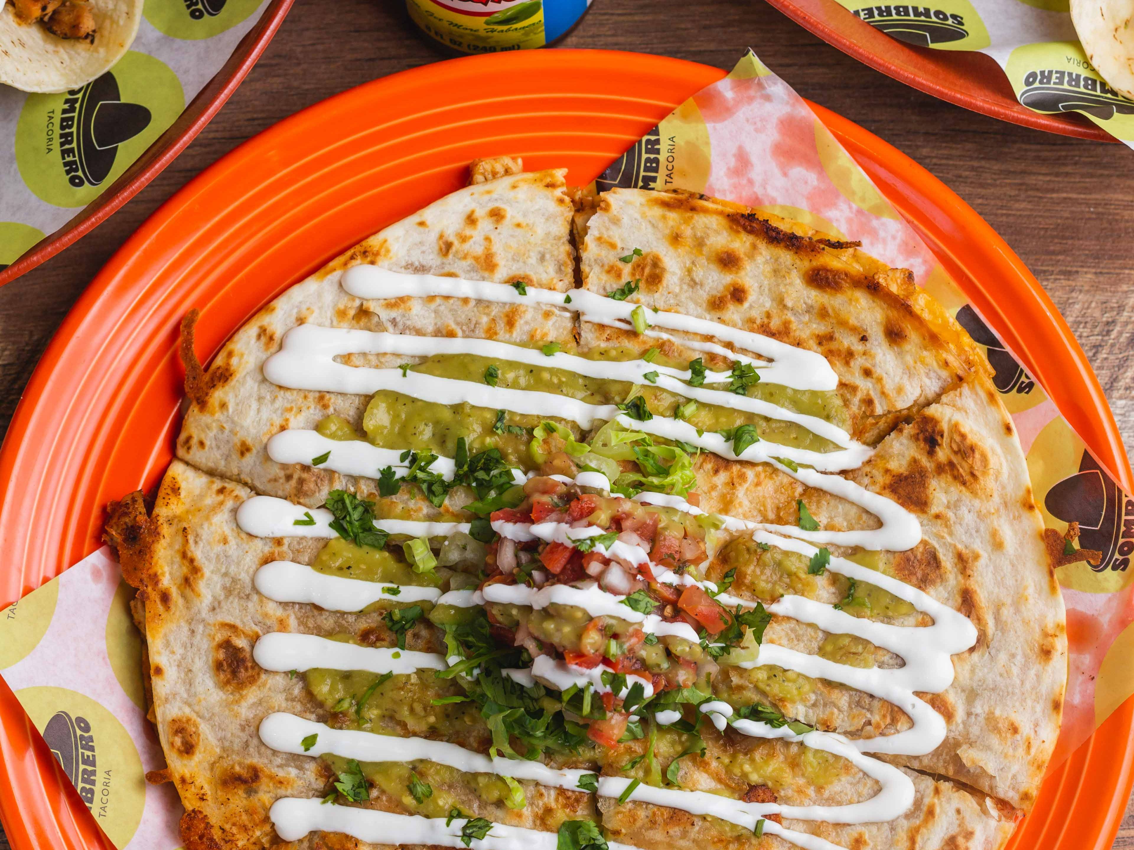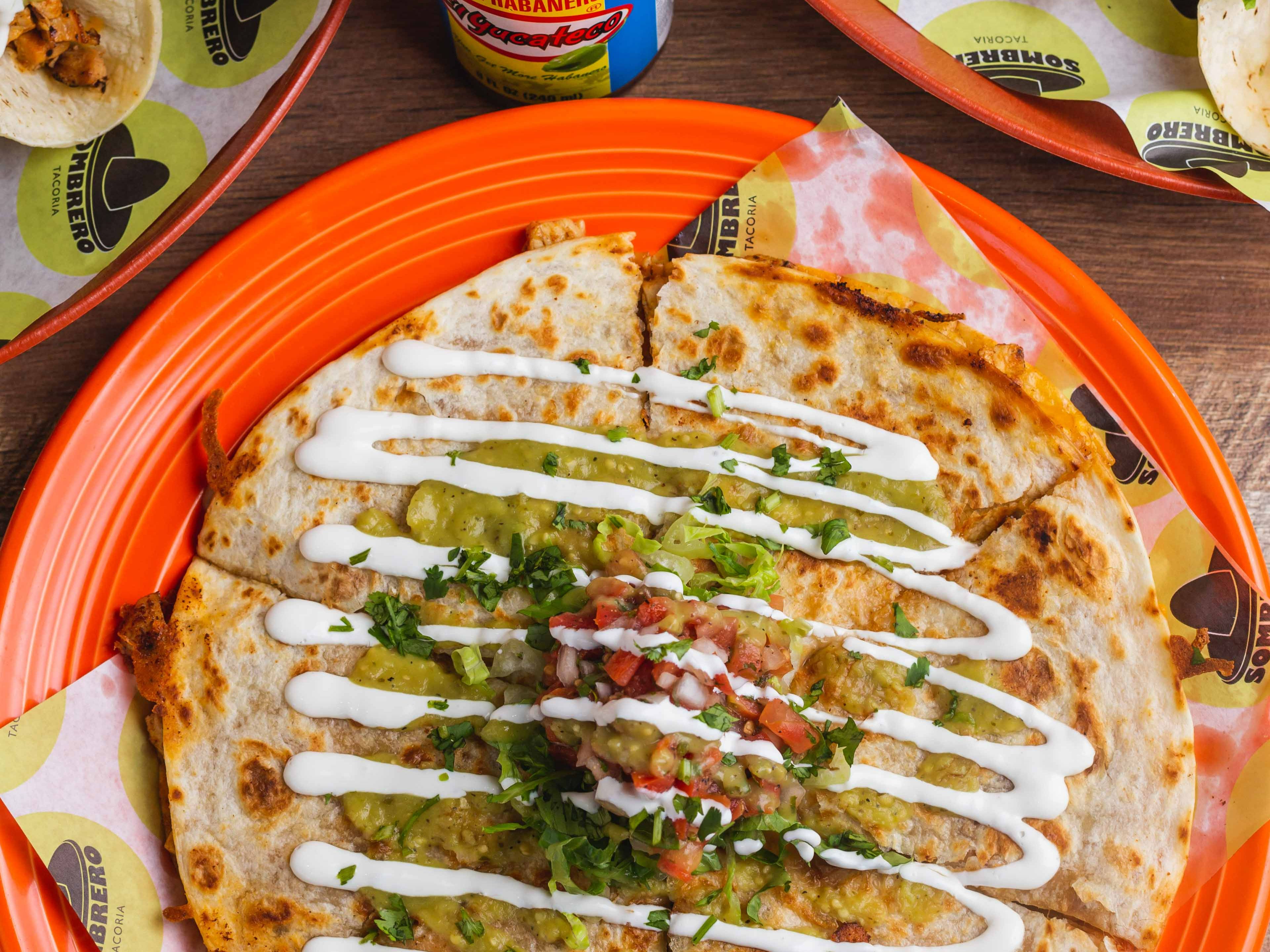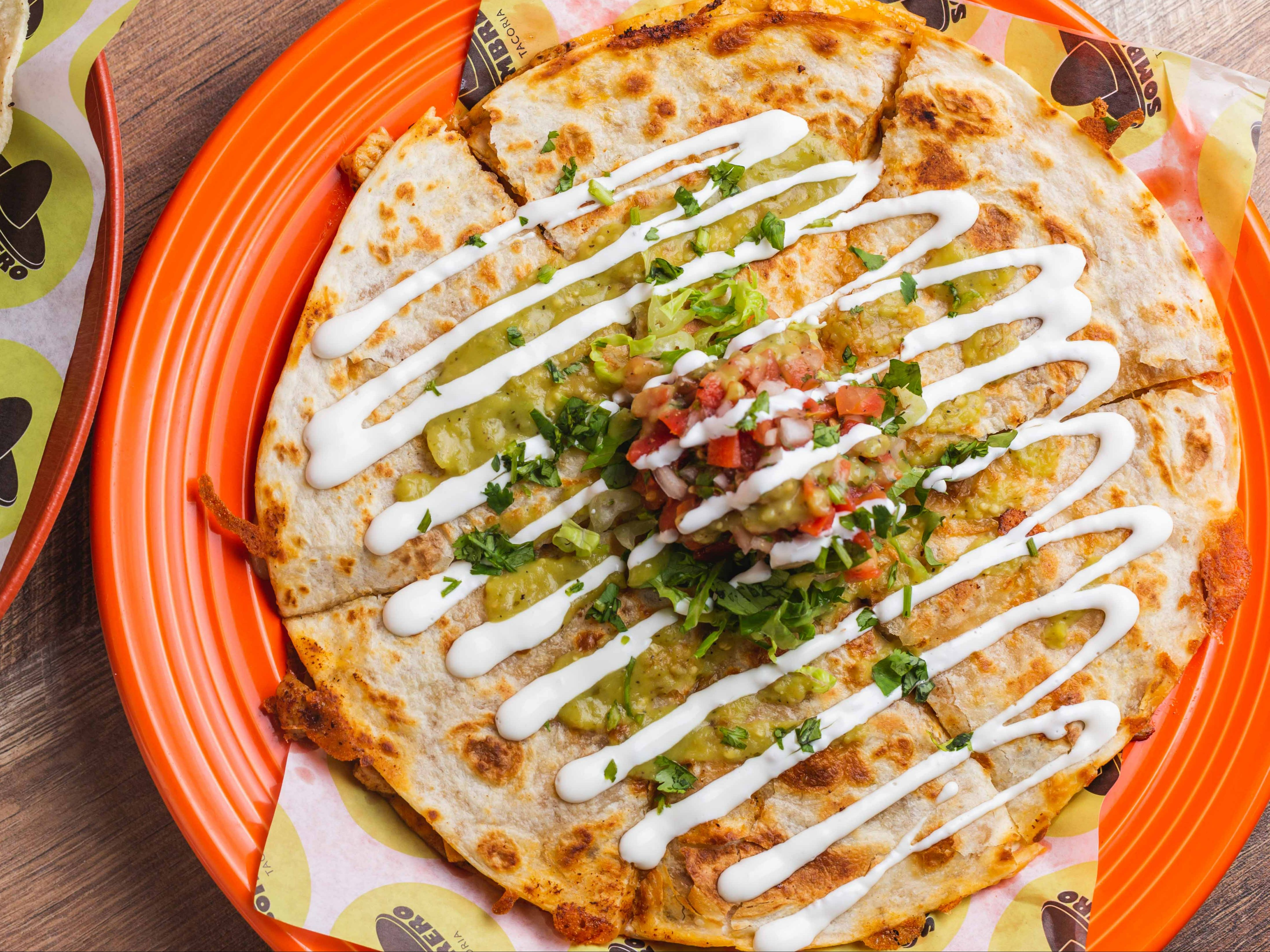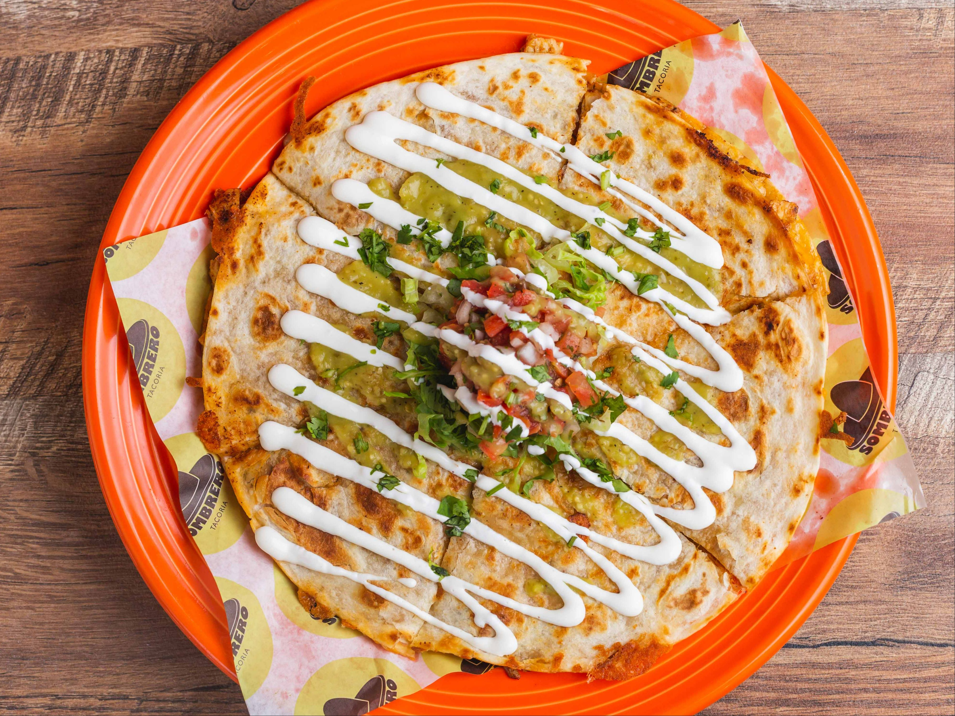 10 PERSONS FOR CATERING ORDER FLOUR TORTILLA FILLED WITH MELTED MEXICAN CHEESE, PICO DE GALLO, TOMATILLO SALSA, CREMA, CILANTRO AND LIME IN ADDITION TO YOUR CHOICE OF TWO FILLINGS (MUSHROOM, CHICKEN, AL PASTOR, CARNITAS, CHORIZO, STEAK, SHRIMP OR FISH)
