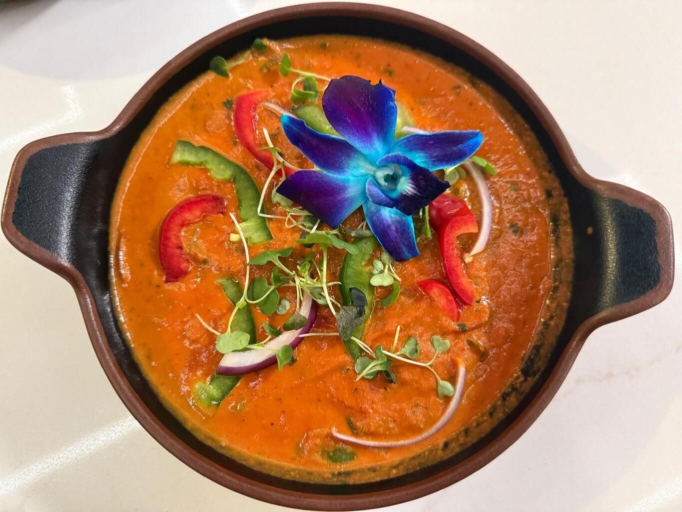 Chicken dish slowly cooked with aromatic spices, red gravy and delicate balance of richness and fragrance
