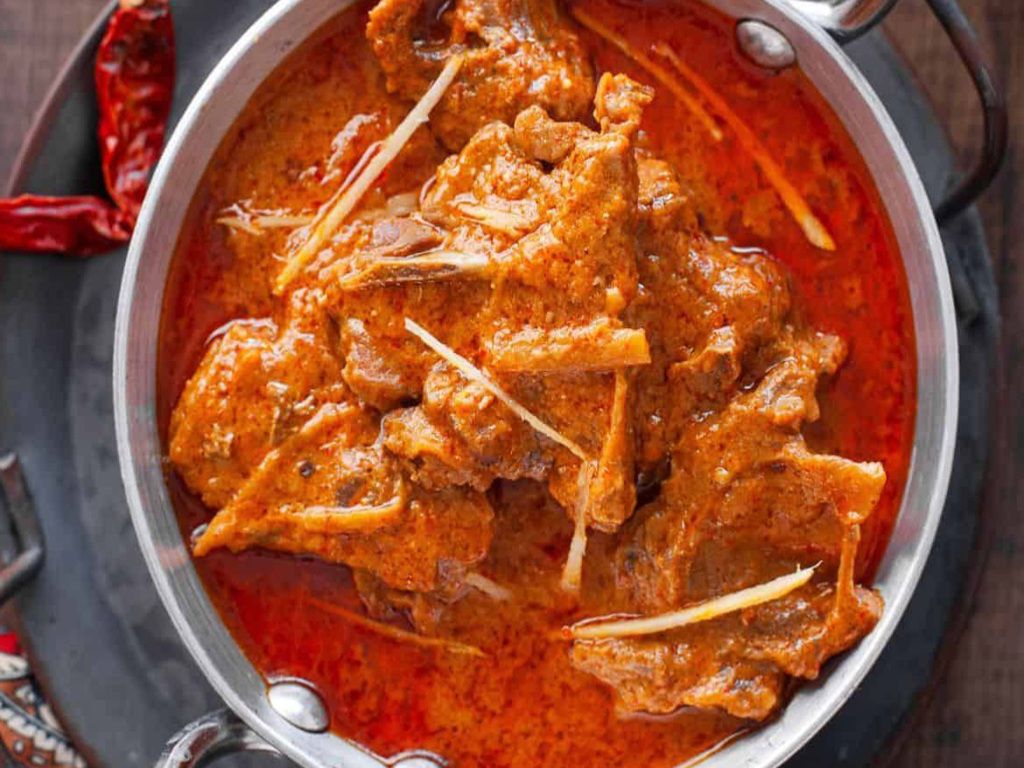 Lamb curry prepared in a sauce of yogurt, chillies, and garlic